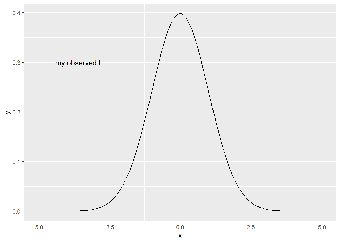 If \(H_0\) really is true, I’d have a 1.5% chance of getting a test statistic at least this far from 0.