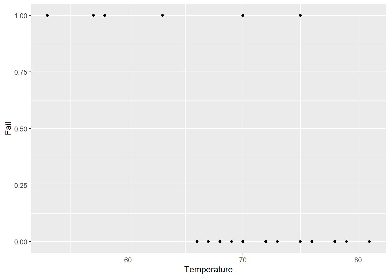 SpaceShuttle$Fail = as.numeric(SpaceShuttle$Fail) - 1 #originally a factor