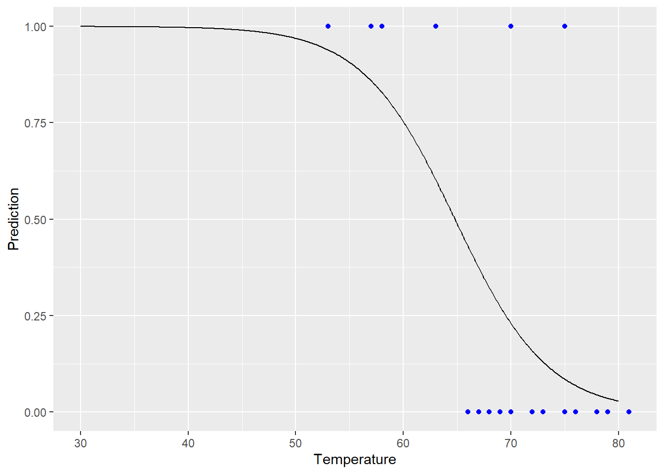 ## glm(formula = Fail ~ Temperature, family = binomial(link = logit),