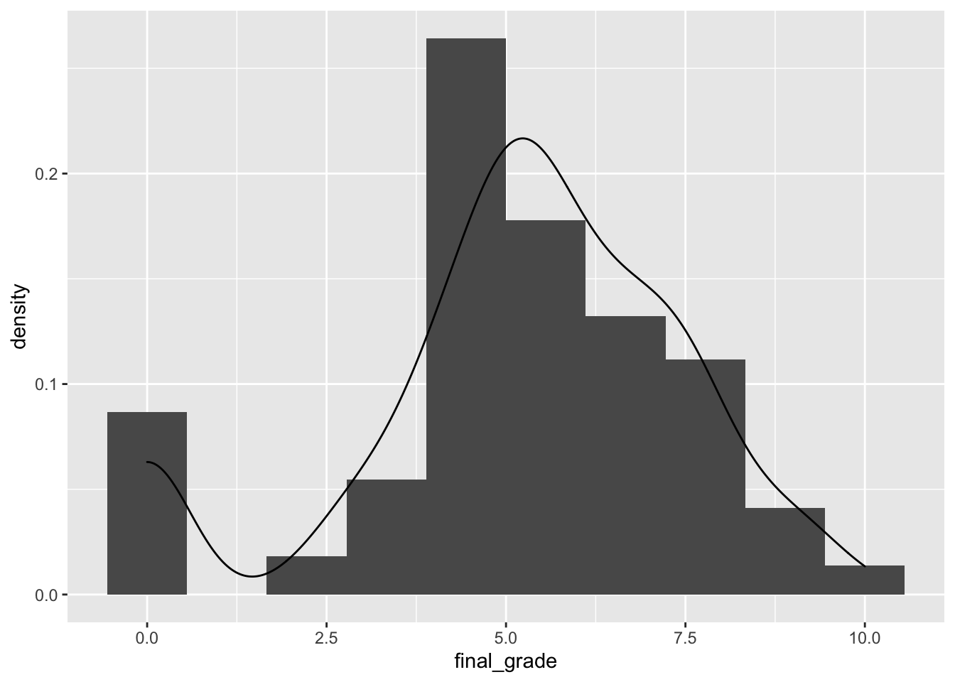 geom_histogram(aes(final_grade,after_stat(density)),bins=10)+