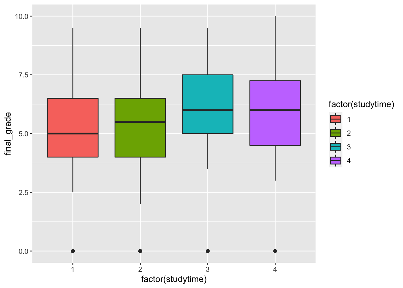geom_boxplot(aes(factor(studytime),final_grade,fill=factor(studytime)))