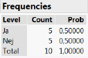 Hvis vi bruger de første \(n\) =10 personers svar som grundlag for at beregne et estimat af \(\hat p\), finder vi at \(\hat p=0,\!5\).