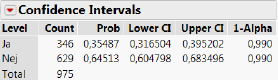 Tilsvarende er eksempelvis et 99%-konfidensinterval givet som \[\begin{align*} &\mathrel{\phantom{=}}\Bigl[\hat p+z_{\alpha/2}\cdot\sqrt{\frac{\hat p(1-\hat p)}{n}};\quad\hat p-z_{\alpha/2}\cdot\sqrt{\frac{\hat p(1-\hat p)}{n}}\Bigr]\\ &=\Bigl[0,\!355-2,\!58\cdot\sqrt{\frac{0,\!355(1-0,\!355)}{975}};\quad 0,\!355+2,\!58\cdot \sqrt{\frac{0,\!355(1-0,\!355)}{975}}\Bigr] = [0,\!317;\quad 0,\!395] \end{align*}\]