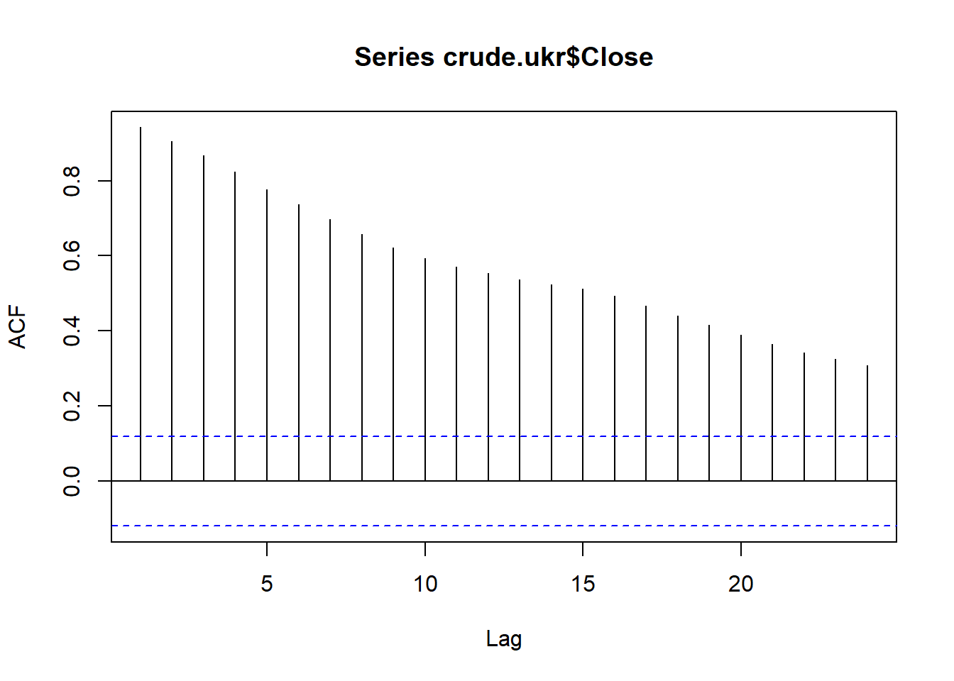 acf(wcrude.train$Close,