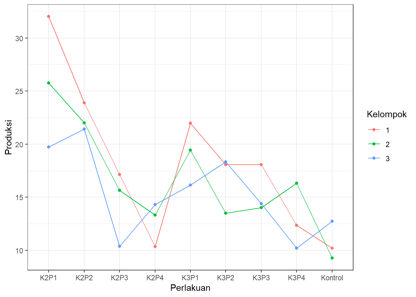 geom_line(data = DataRAKL, aes(y = Produksi, group = Kelompok)) +