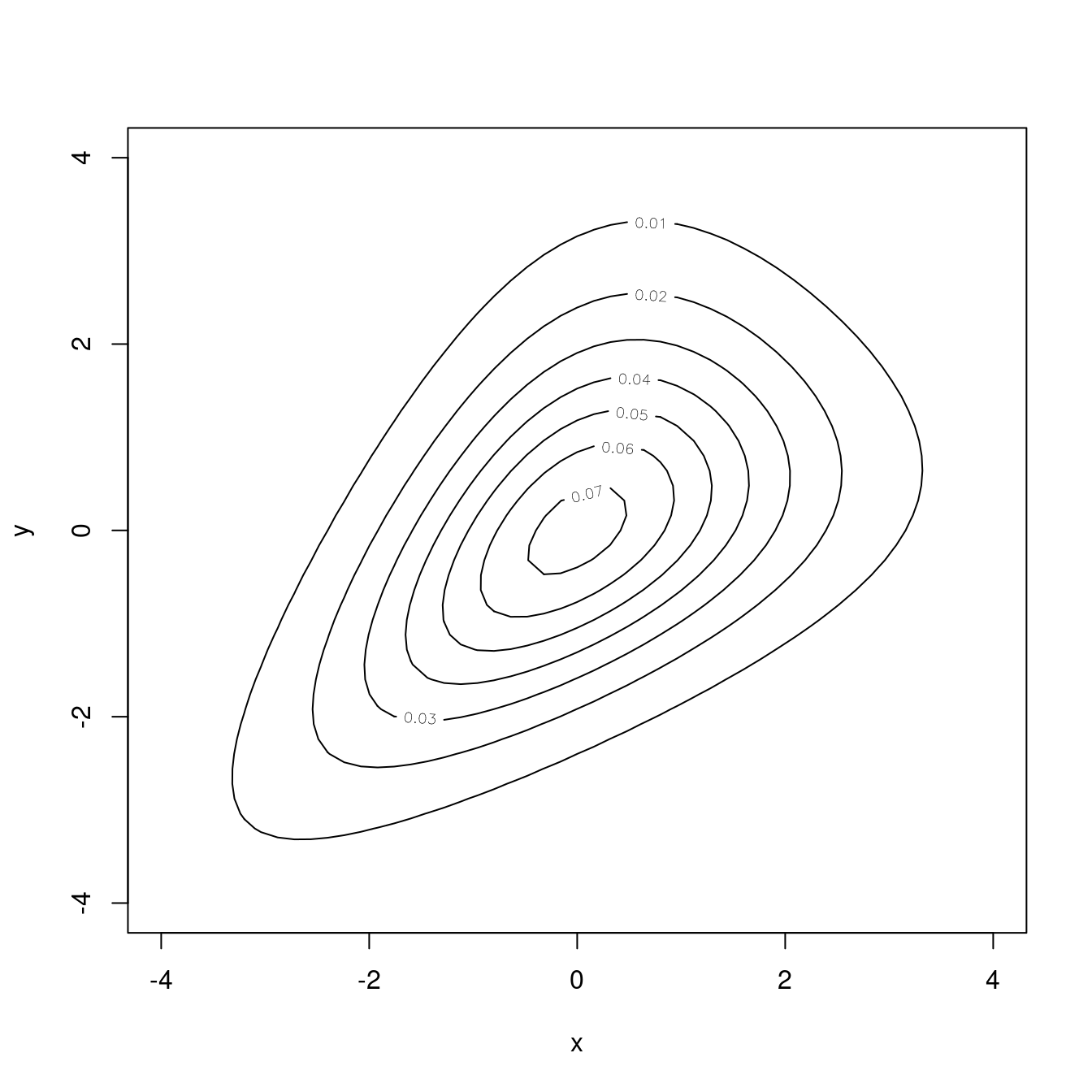 Der Contour-Plot für die obige Dichte sieht so aus: