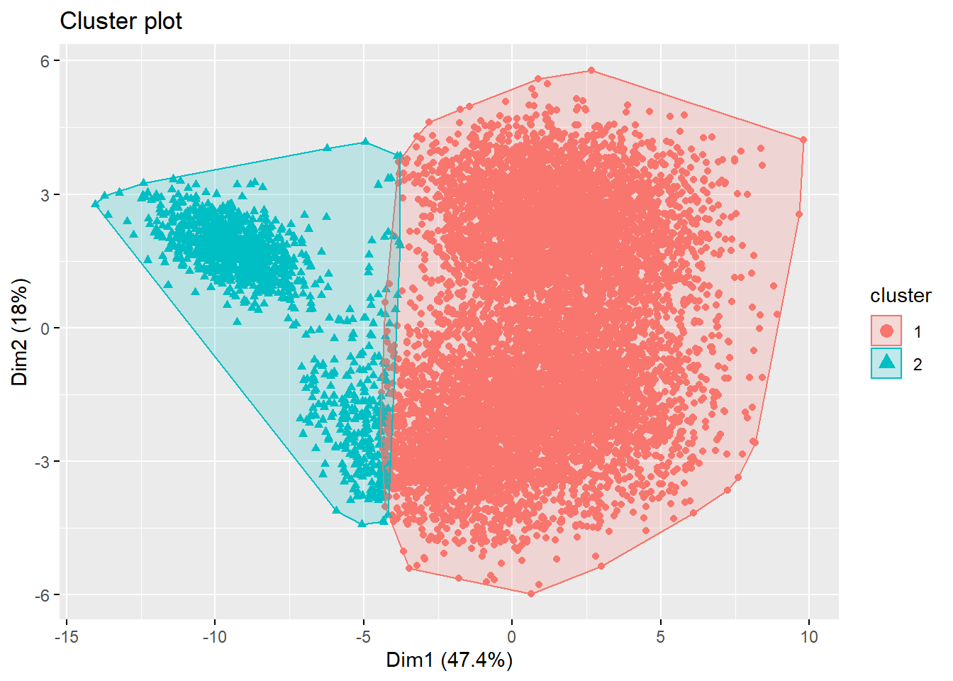 # 'convex' )Some may have experienced issues due to limited working memory (Error: cannot allocate vector of size …). This can be countered by fitting your clusters on a more limited sample size as is done in the example below (with 1000 samples). Note that the determination of optimal number of clusters with the NbClust method was also based on a limited sample size.