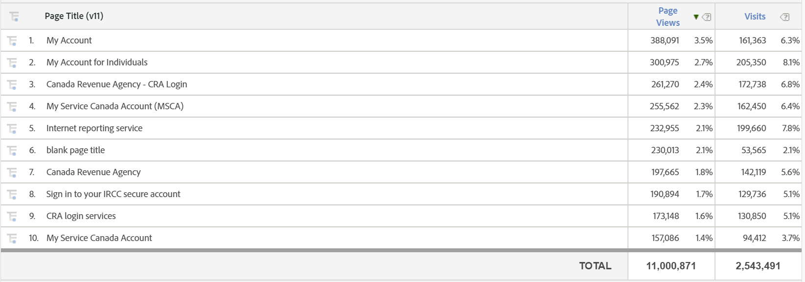 - Form name: The name given to the form by the content creator, e.g. CRA: Check CRA processing times.