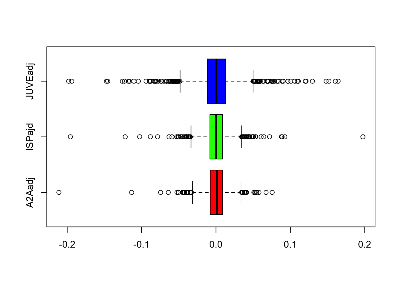 head(logprices)## A2Aadj ISPajd JUVEadj