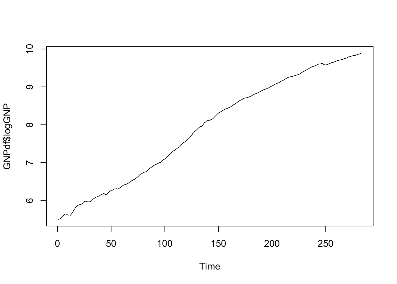 str(GNPdf)## 'data.frame': 283 obs. of 2 variables: