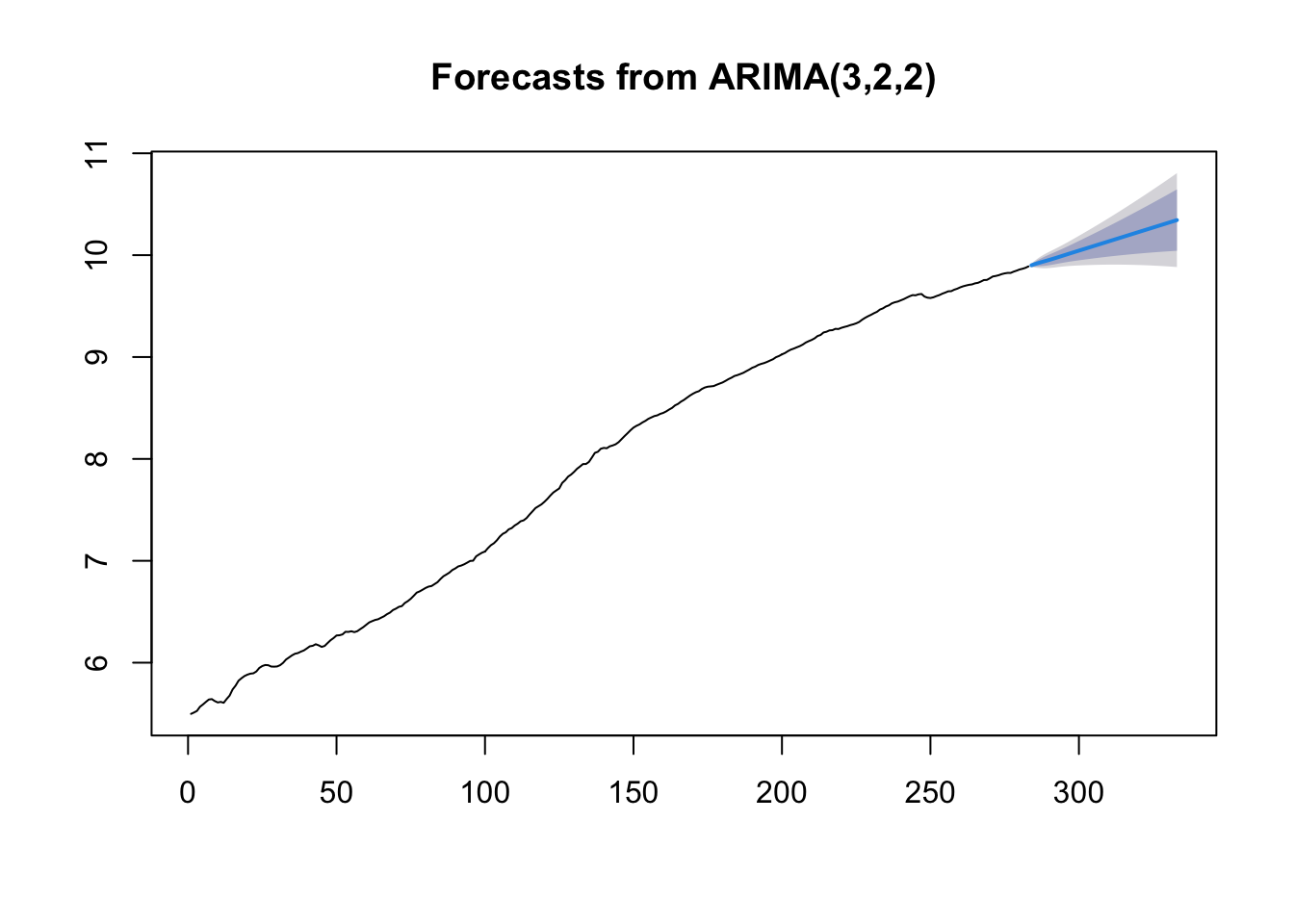 mod9original = Arima(GNPdf$logGNP, order=c(3,2,2),include.constant = TRUE)