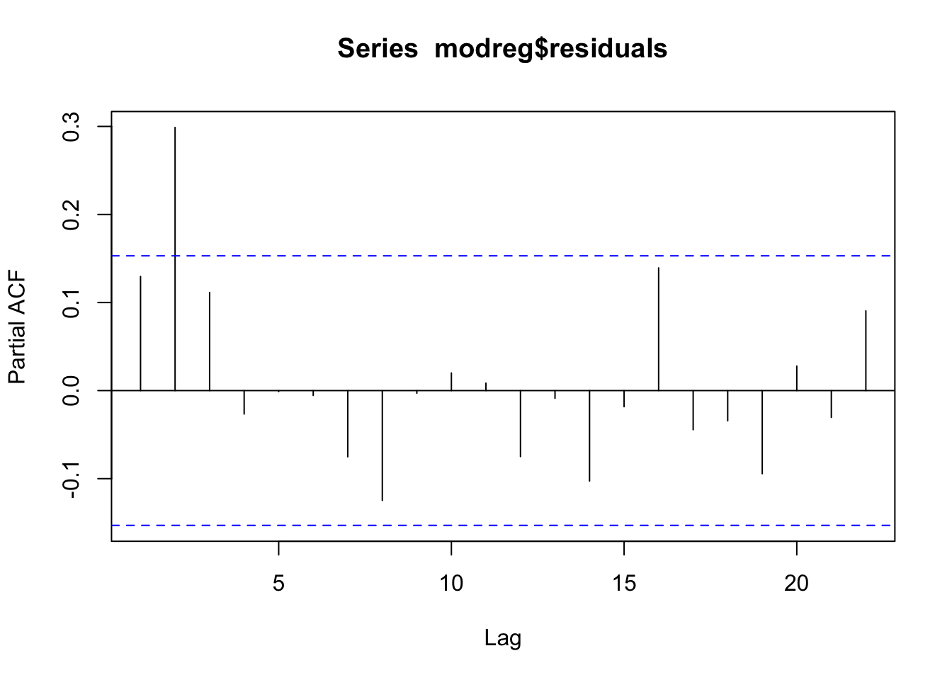 pacf(modreg$residuals)