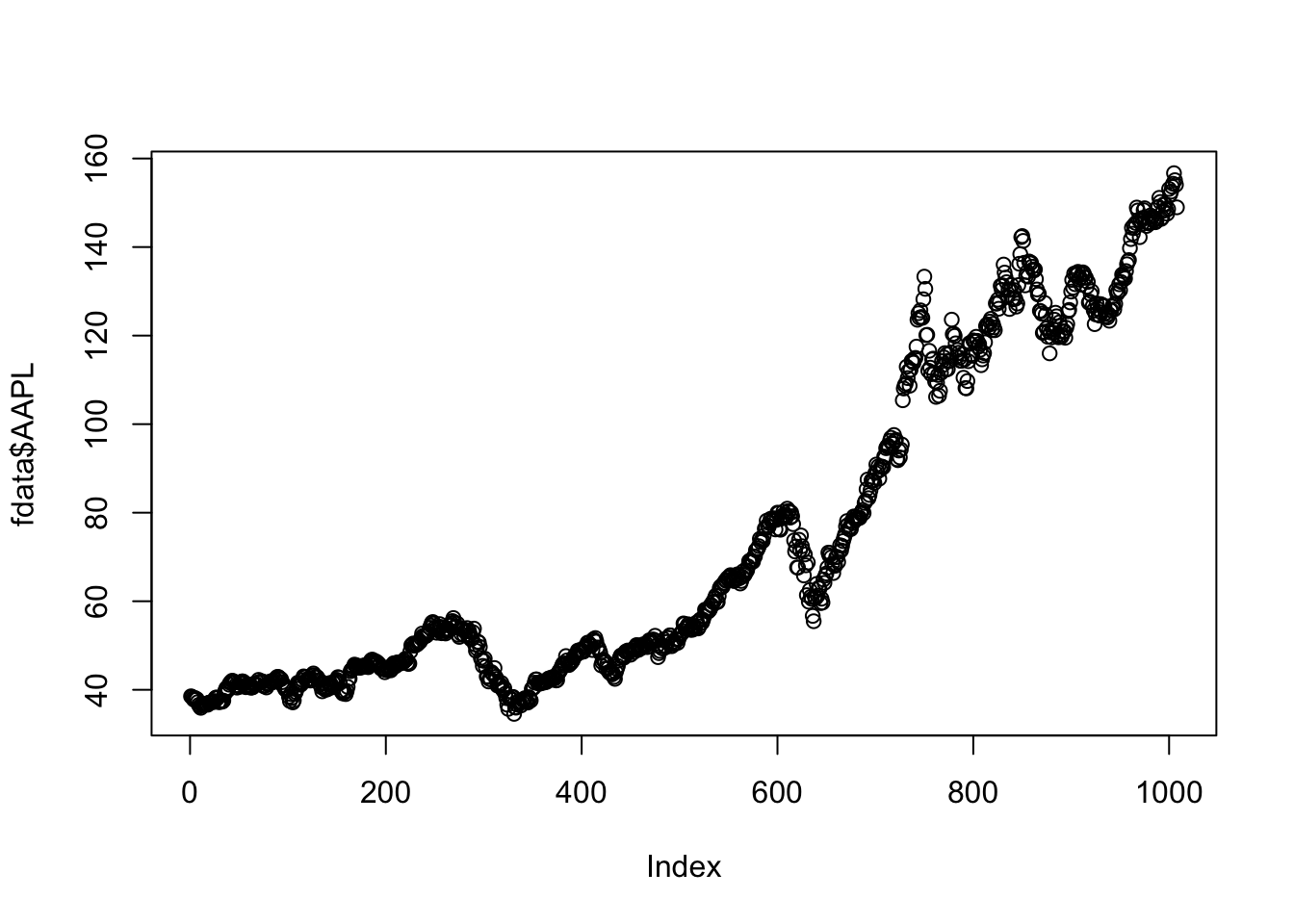 plot(as.Date(fdata$Date) , fdata$AAPL,