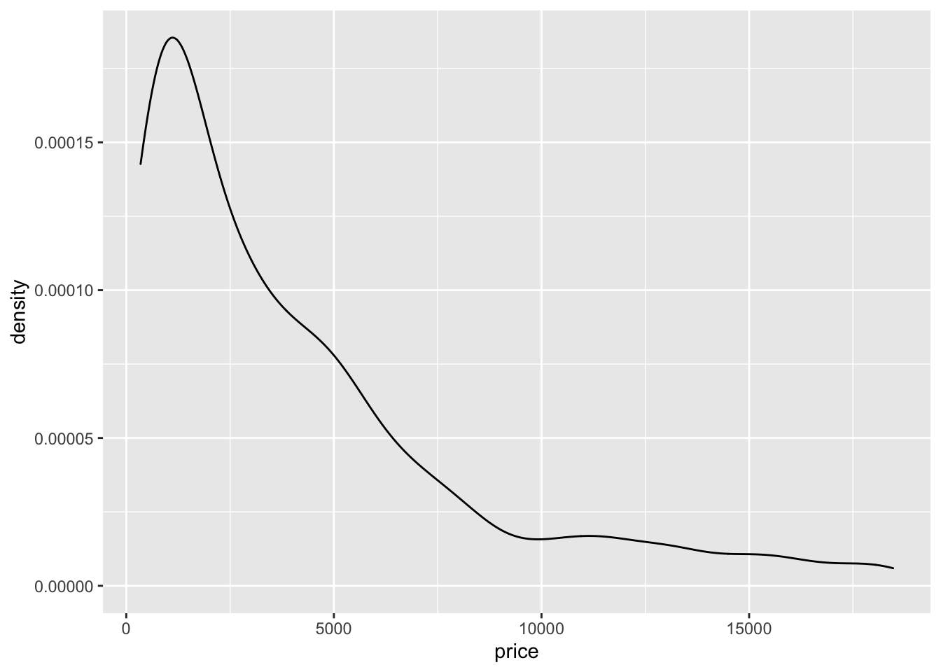 geom_density(aes(x=price))## `stat_bin()` using `bins = 30`. Pick better value with `binwidth`.