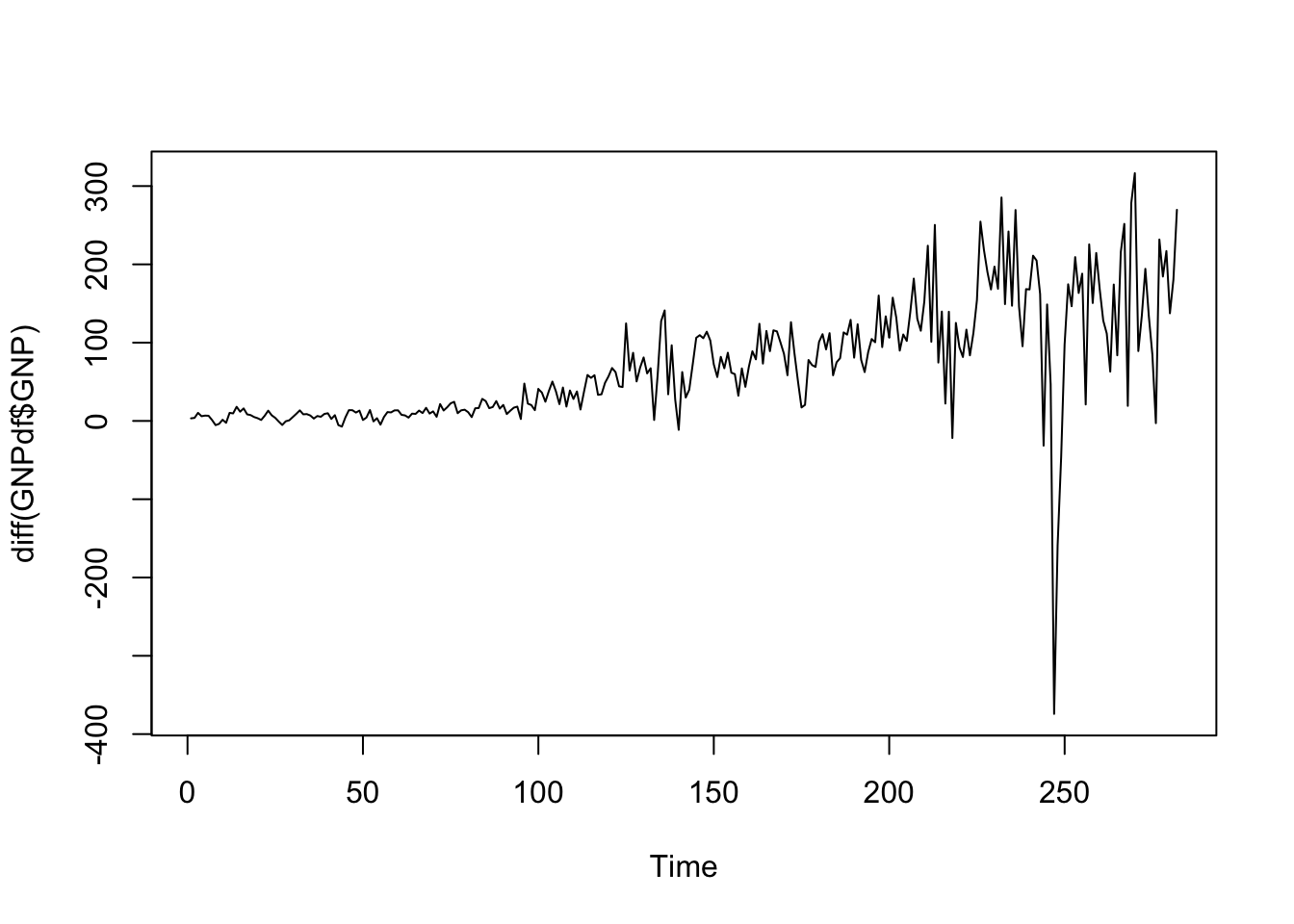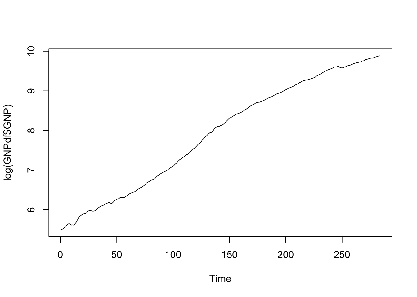 str(GNPdf)## 'data.frame': 283 obs. of 2 variables: