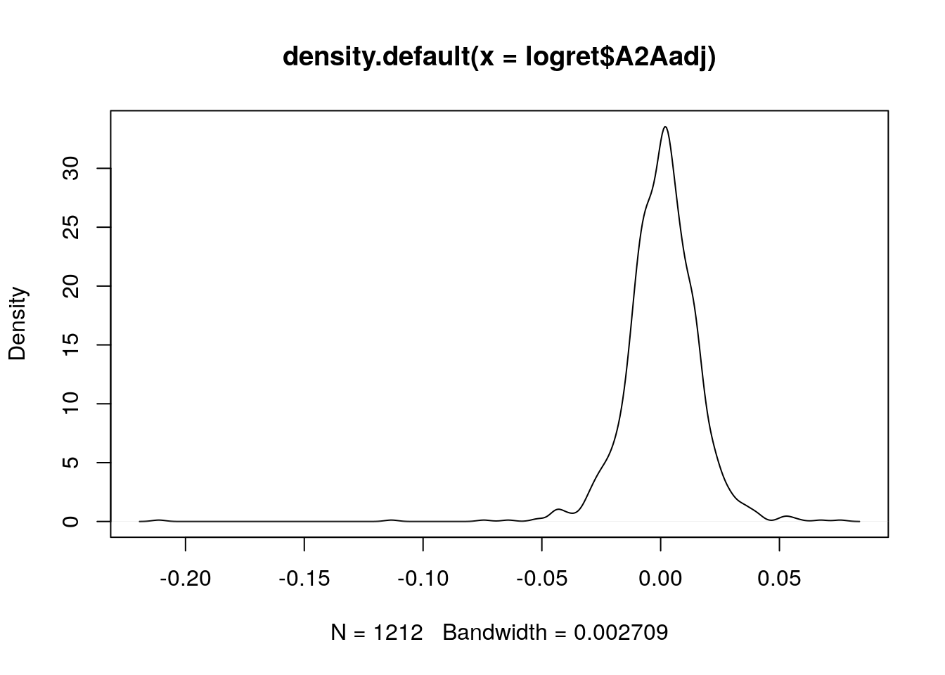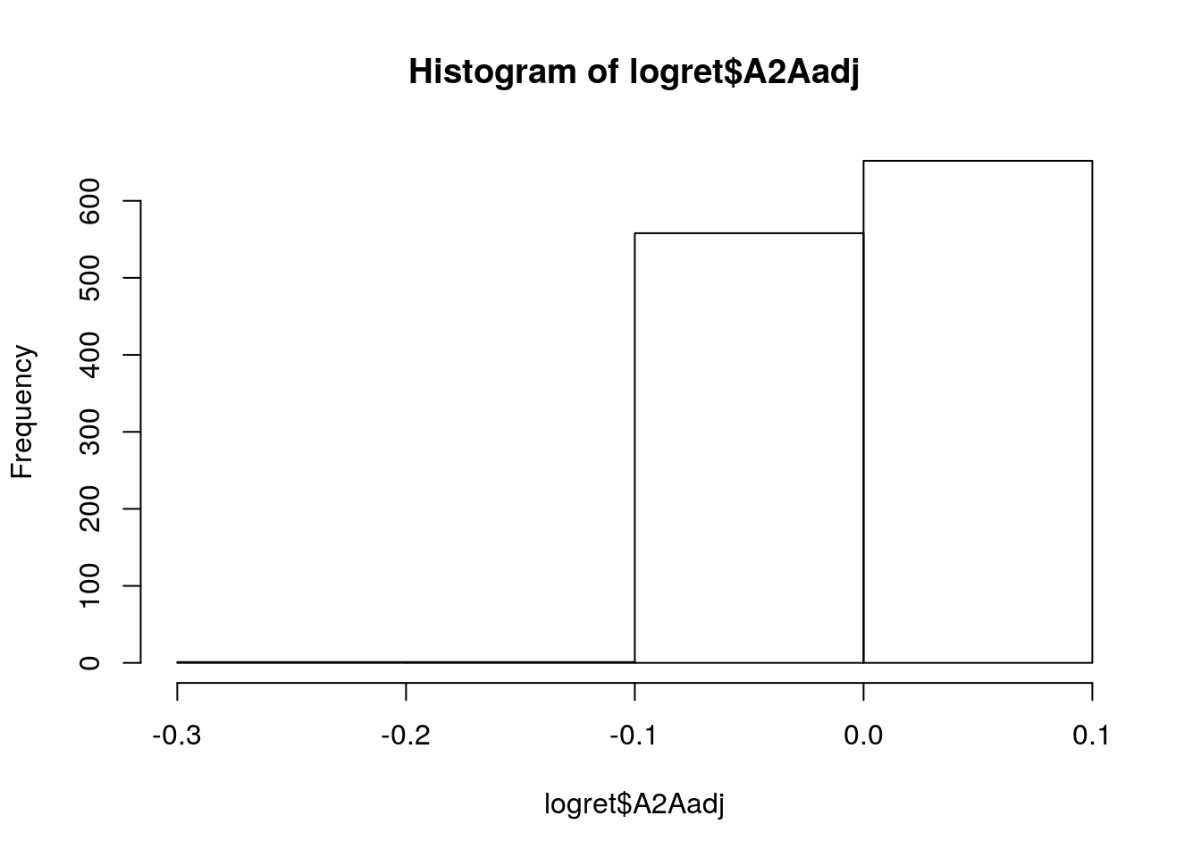hist(logret$A2Aadj, plot = FALSE)## $breaks