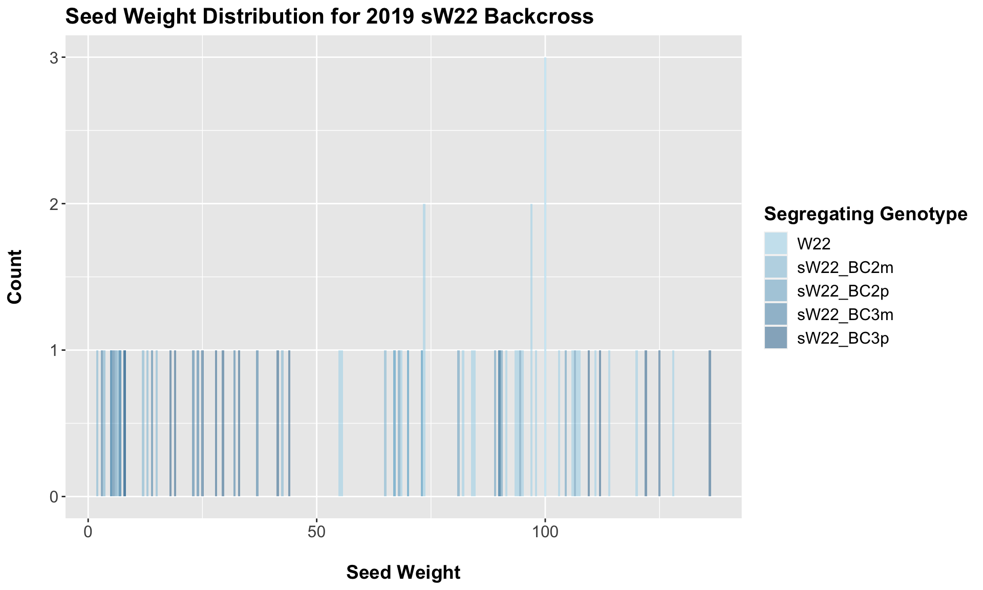 We find that there is a significant reduction in seed weight for the sW22_Mo17 backcrosses compared to the W22_Mo17 backcrosses.