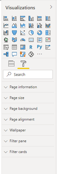 We can start customizing report page by clicking on the format icon of the Visualization pane without choosing any visual.