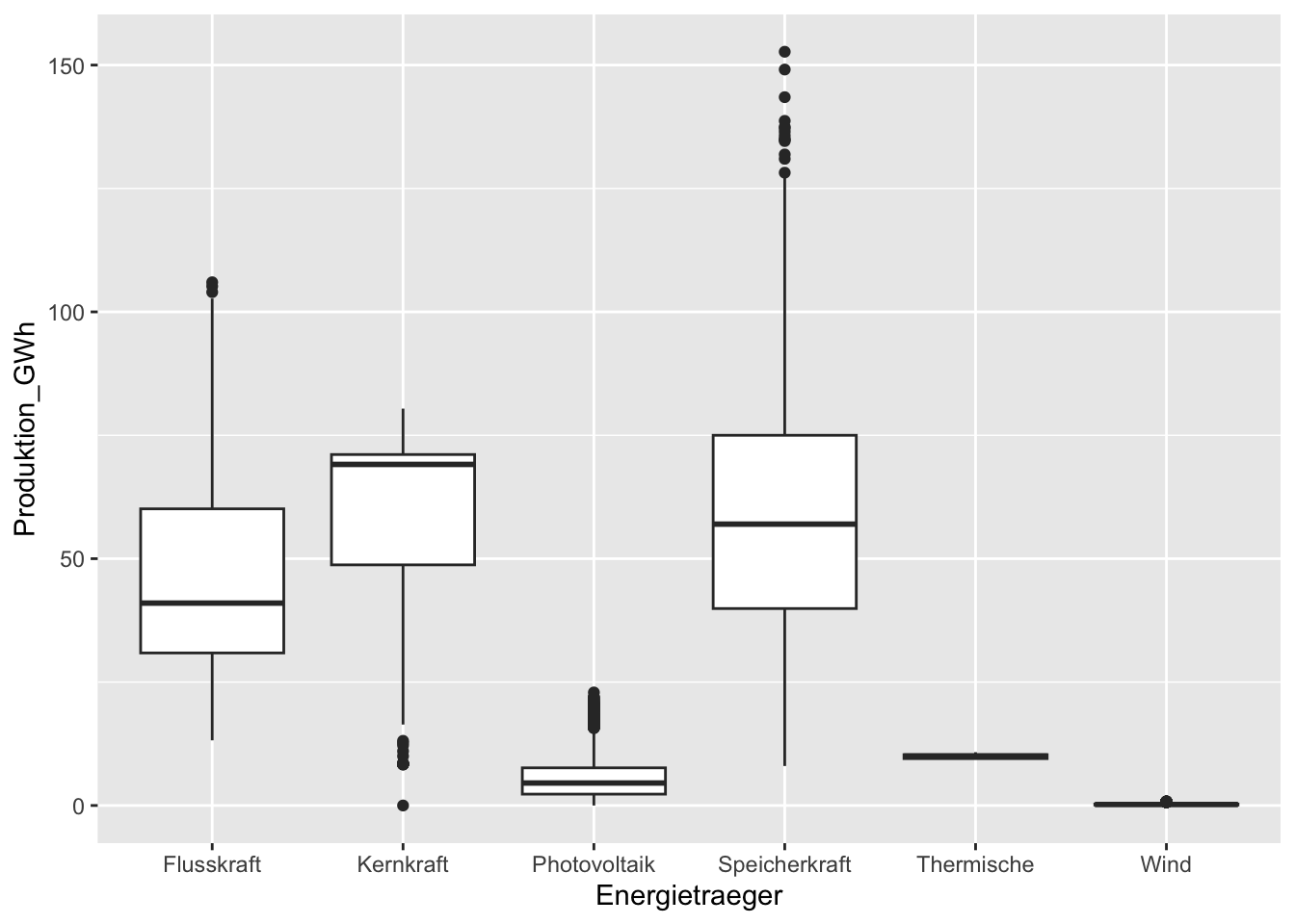 ggplot(aes(x = Energietraeger, y = Produktion_GWh)) + ## Aesthetics