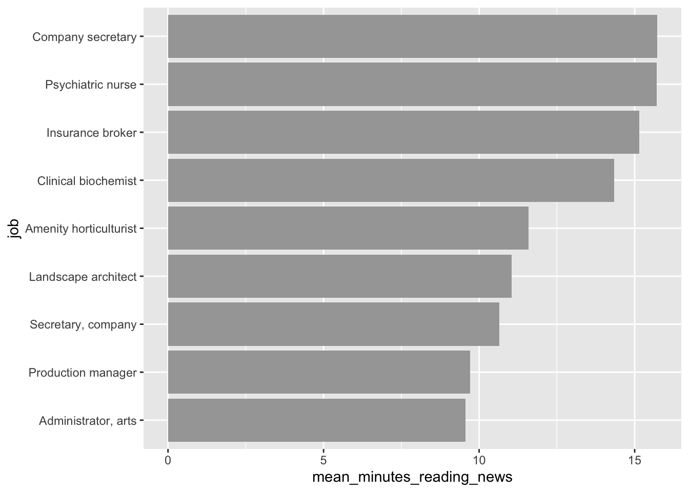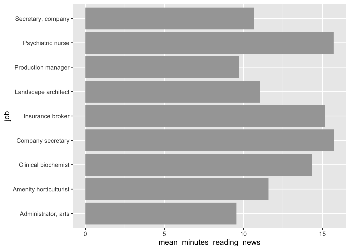 geom_col(aes(y = job, x = mean_minutes_reading_news))