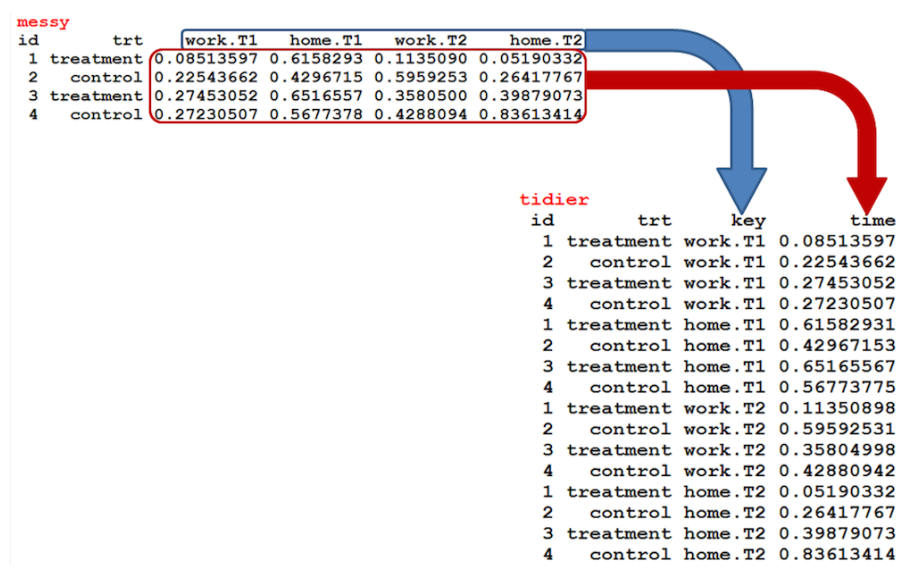 widetolong <- exper %>% gather(key = location, value = time, work.T1:home.T2)