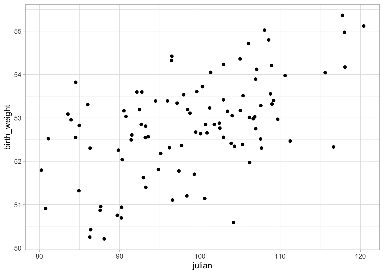 X = dim(model.matrix(birth_data$birth_weight ~ birth_data$julian))[2]