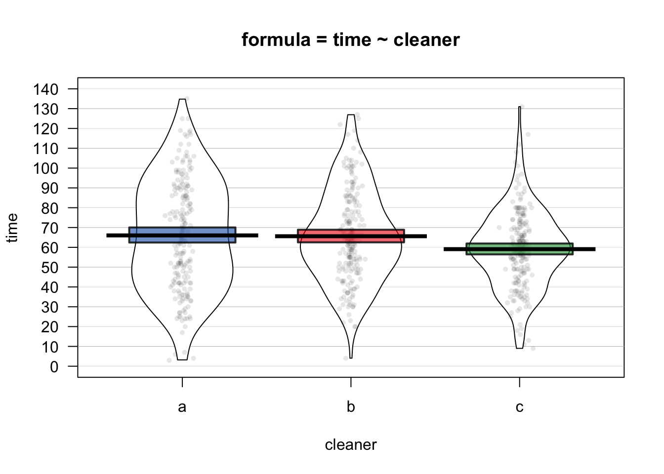 main = "formula = time ~ cleaner")