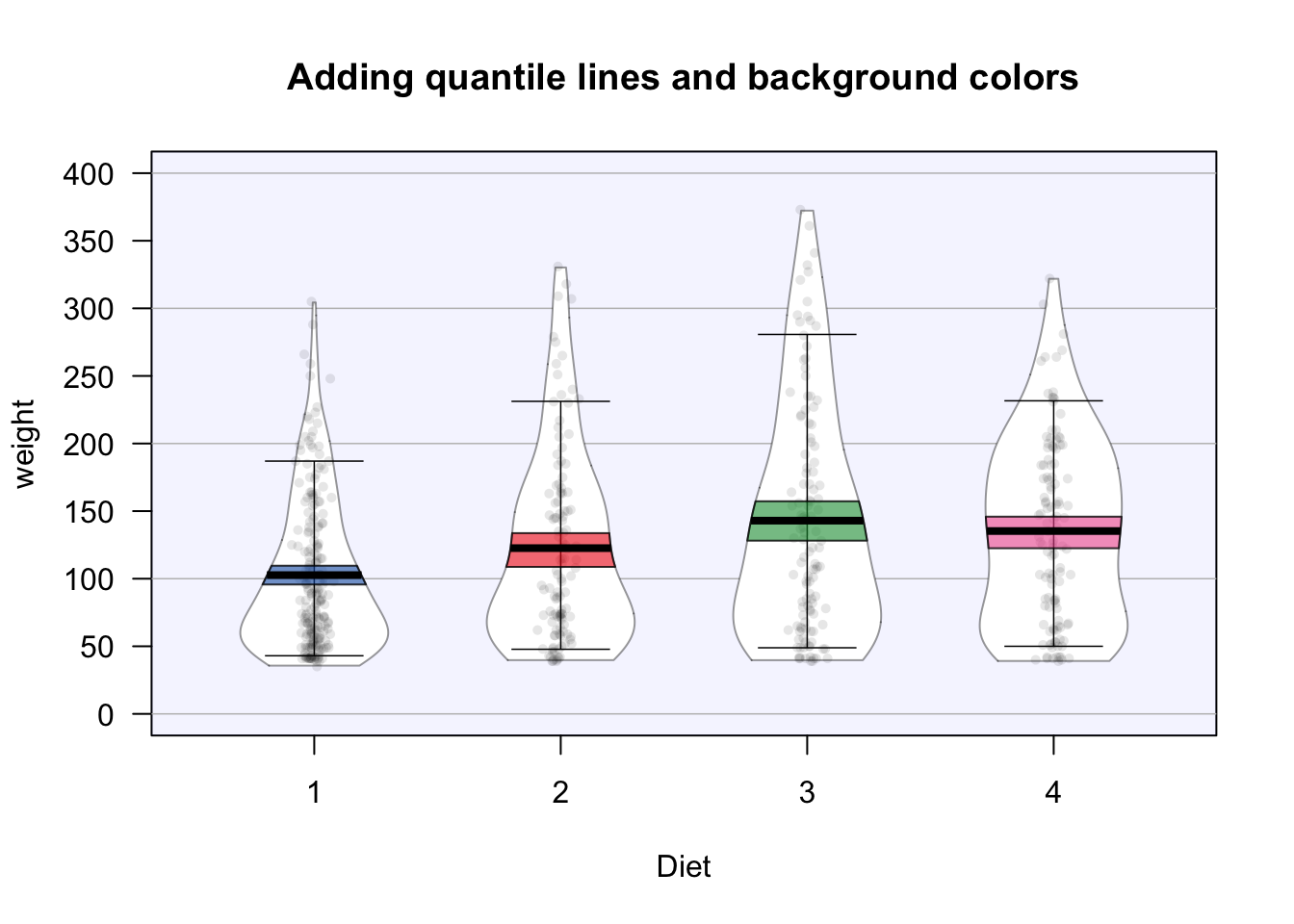 yarrr::pirateplot(formula = weight ~ Time, # dv is weight, iv is Diet