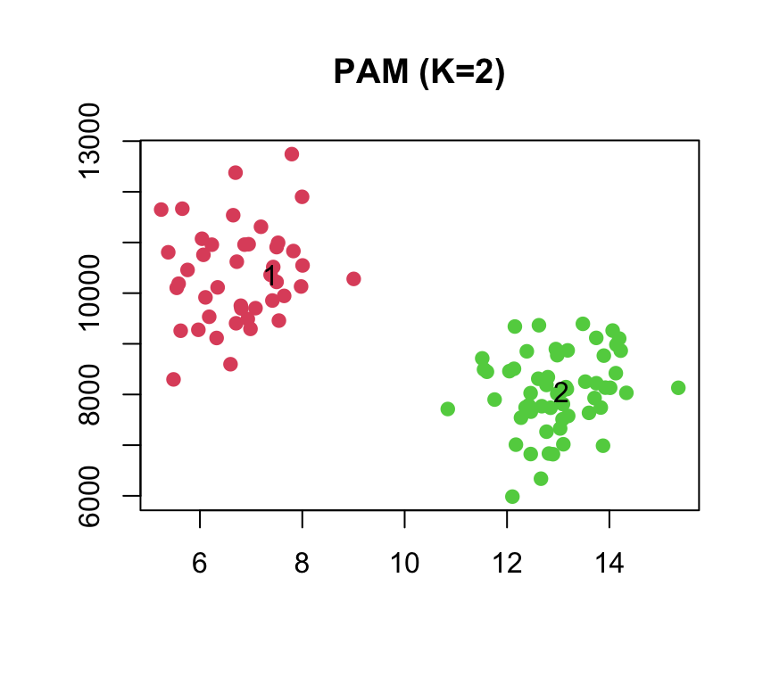 Un altro metodo per ottenere cluster basati sulla densità è disponibile con la funzione pdfCluster. Esso è basato su una stima non parametrica della funzione di densità immaginando che la distribuzione abbia più regioni a alta densità che sono identificabili come mode. È quindi basato sulla ricerca di mode nella distribuzione dei dati (che si immagina siano quantitativi).