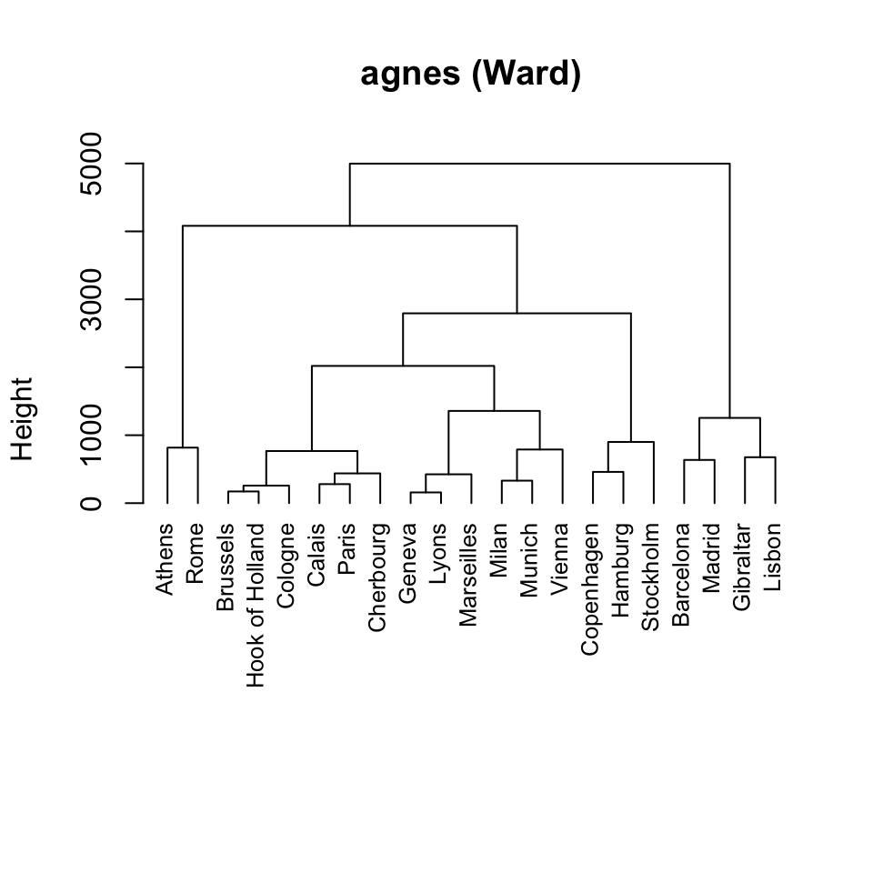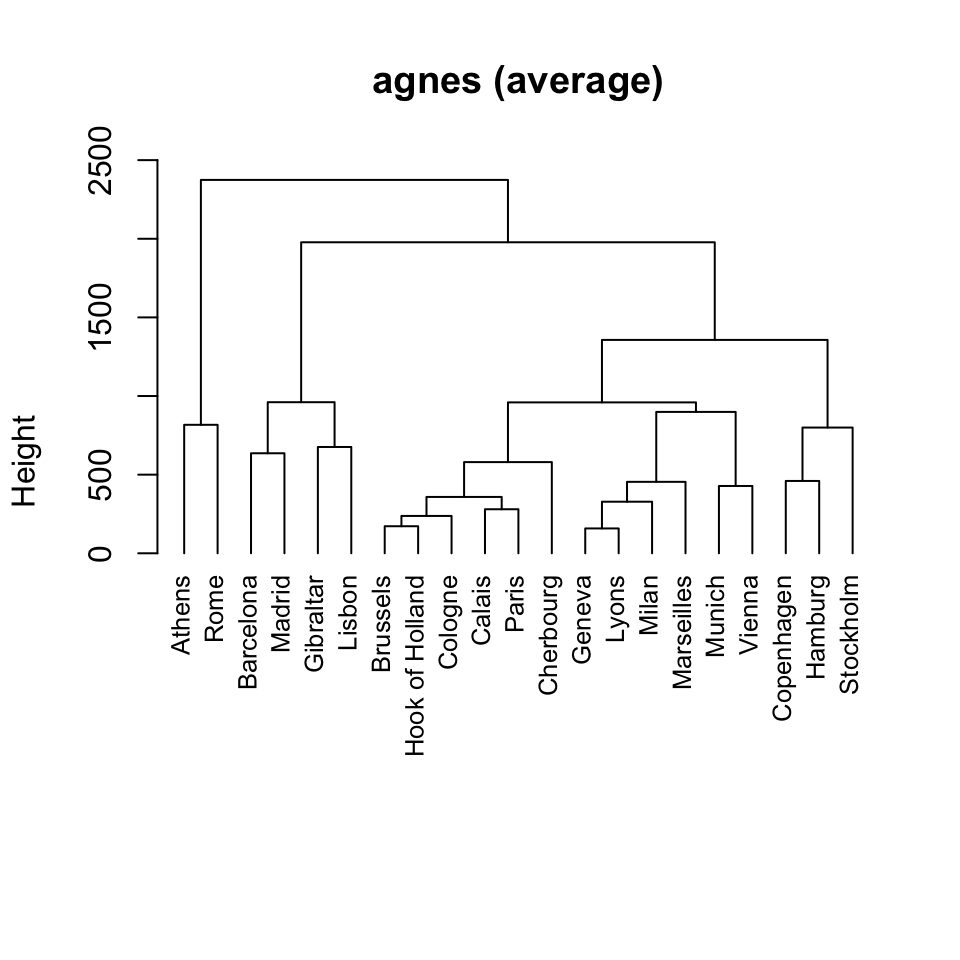 Nota: il clustering basato sulla correlazione viene utilizzato anche nelle applicazioni dei mercati finanziari, dove è opportuno determinare gruppi di titoli che si muovono insieme nel tempo. In tale contesto, i coefficienti di correlazione \(r_{ij}\) vengono convertiti in distanze, ad esempio utilizzando \(d_{ij}=\sqrt{(2(1-r_{ij}))}\). Approcci alternativi utilizzano misure di associazione/concordanza come la correlazione di Kendall e Spearman, nonché varie misure di dipendenza dalla coda.