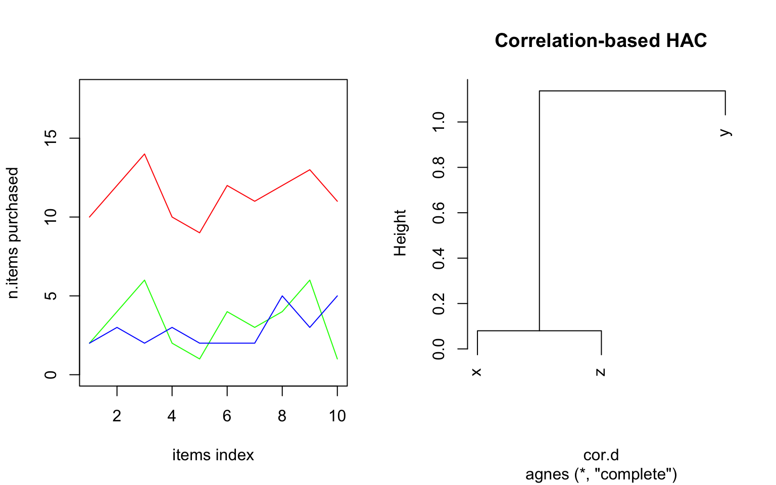 I clienti “x” e “z” hanno valori abbastanza diversi per ciascuna variabile, ma sono altamente correlati, quindi c’è una piccola distanza basata sulla correlazione tra loro, quindi sono raggruppati insieme.