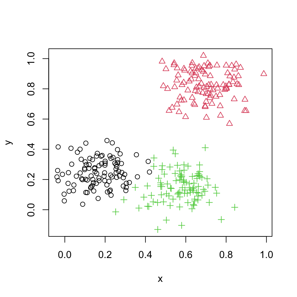 d <- cbind(x = runif(3, 0, 1) + rnorm(n, sd = 0.1),