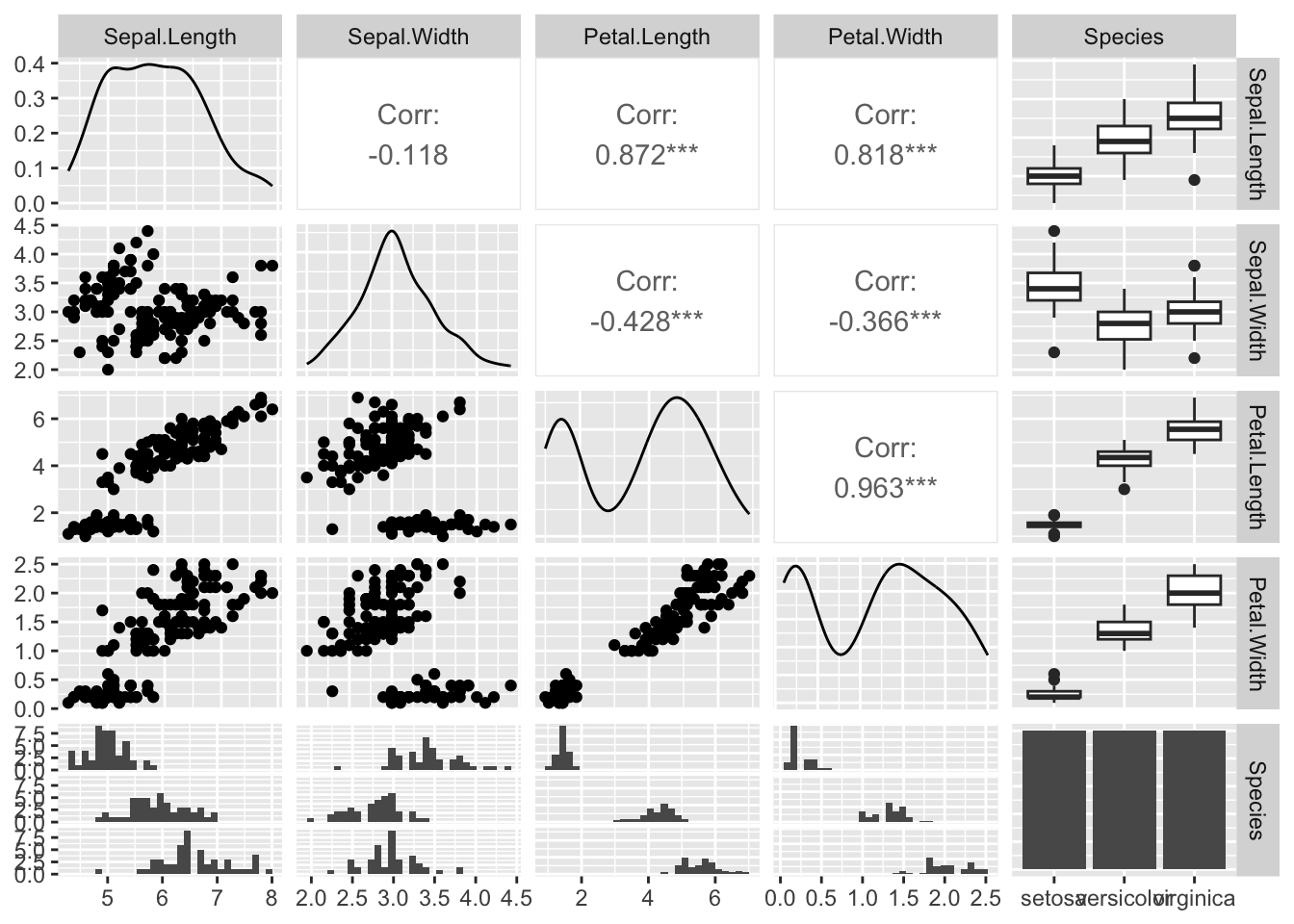 | Petal.Width | 0.82 | -0.37 | 0.96 | 1.00 |