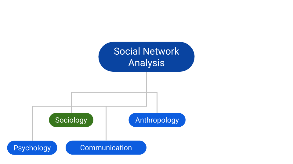 The inter-disciplinary field in charge of studying social networks is called social network analysis (SNA), and is composed of insights from a variety of other social science disciplines such as sociology, anthropology, psychology, communication, and others. SNA in its turn, is part of an even larger interdisciplinary field in charge of studying all types of networks called network science which includes work in physics, computer science, data science, biology, engineering, mathematics, and other fields. The relationship between these fields is depicted in figure 0.3.
