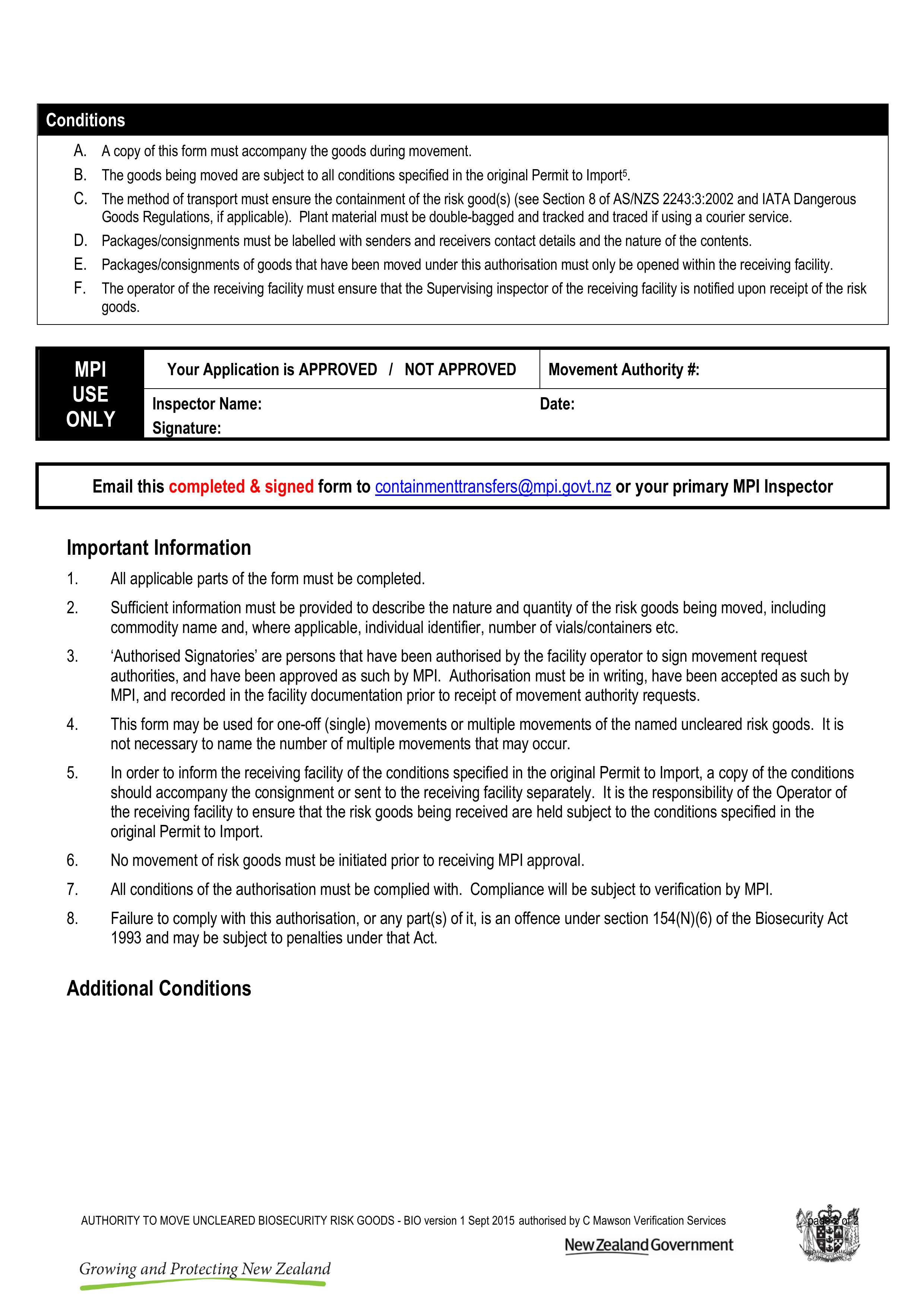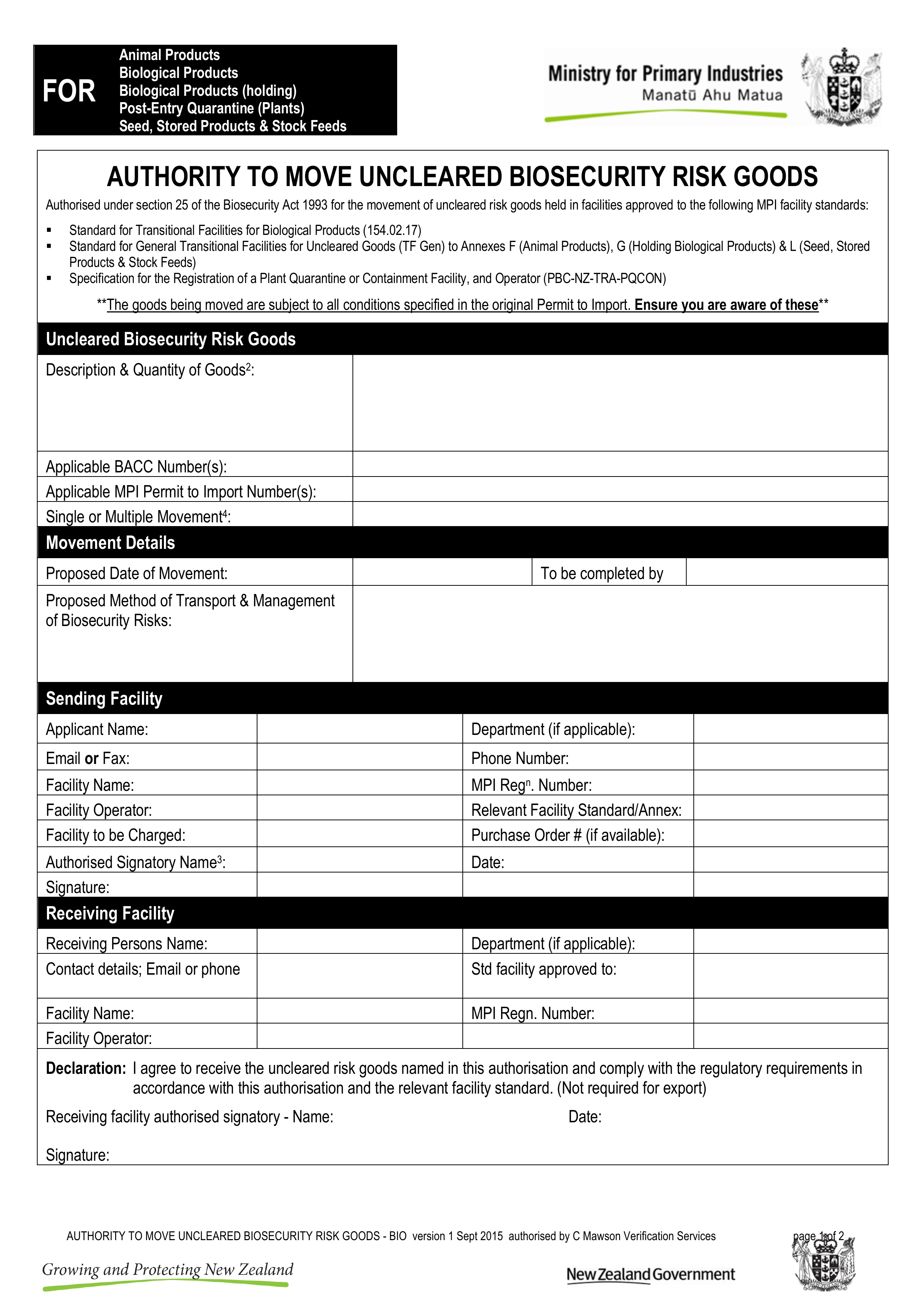 Otago Marine Core Sediment Facility MPI Transitional Facility Manaual for Holding and Processing Uncleared Risk Goods