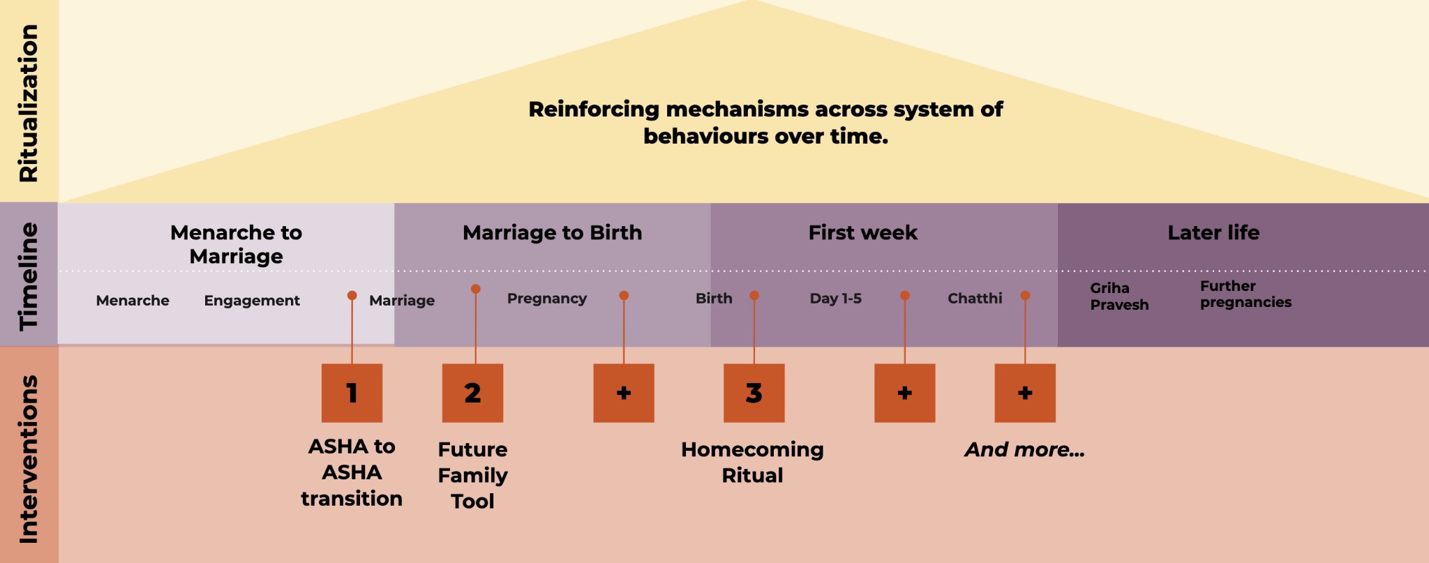 Interventions across the woman’s timeline, such as the Future Family Tool, can therefore be unified through a common Rituals Strategy approach to increase adherence to recommended practices under the Ritualization Mechanisms: