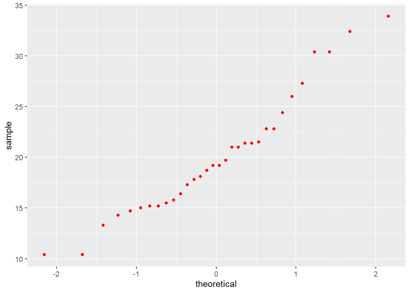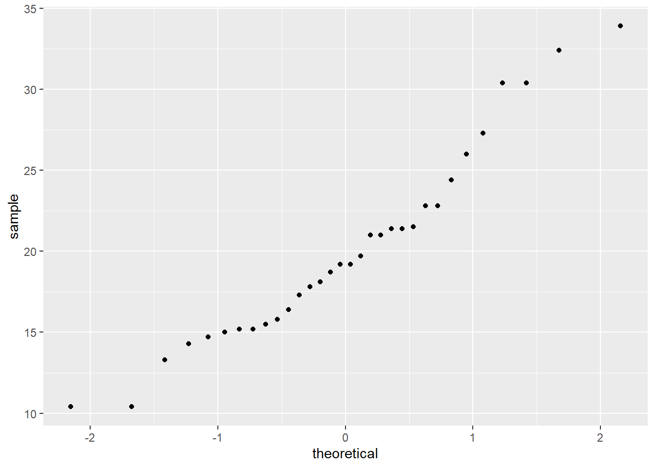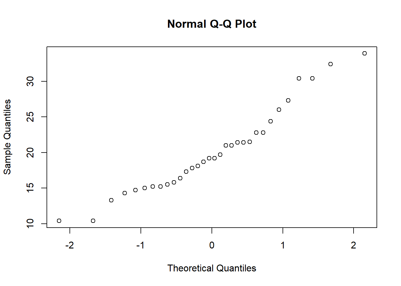 The quantile-quantile (q-q) plot is a graphical technique for determining whether the variable of interest follows the normal distribution or not.