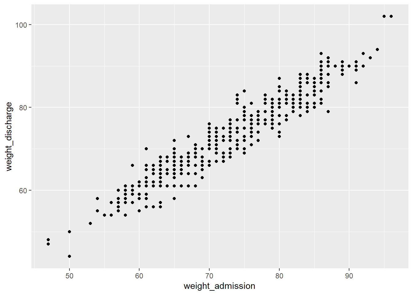 geom_smooth(aes(x = weight_admission, y = weight_discharge))