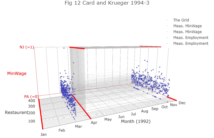 - “On April 1, 1992, New Jersey’s minimum wage rose from $4.25 to $5.05 per hour. To evaluate the impact of the law we surveyed 410 fast-food restaurants in New Jersey and eastern Pennsylvania before and after the rise. Comparisons of employment growth at stores in New Jersey and Pennsylvania (where the minimum wage was constant) provide simple estimates of the effect of the higher minimum wage. We also compare employment changes at stores in New Jersey that were initially paying high wages (above $5) to the changes at lower-wage stores. We find no indication that the rise in the minimum wage reduced employment.”