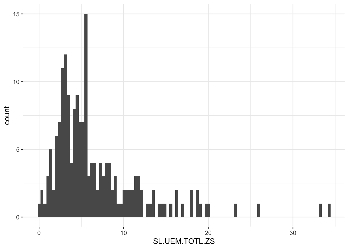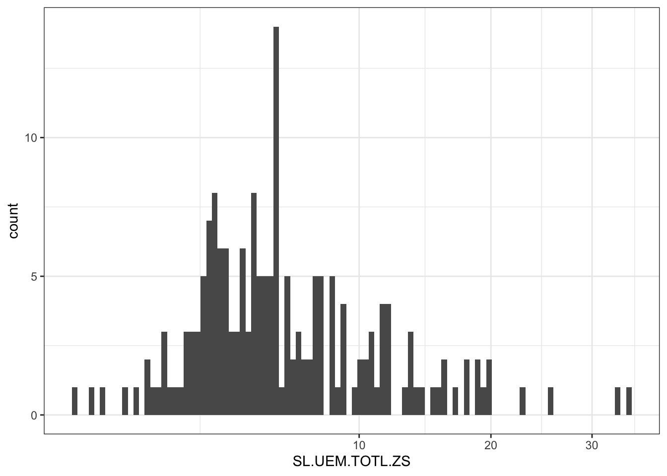 ggplot2::ggplot(ggplot2::aes(SL.UEM.TOTL.ZS)) +