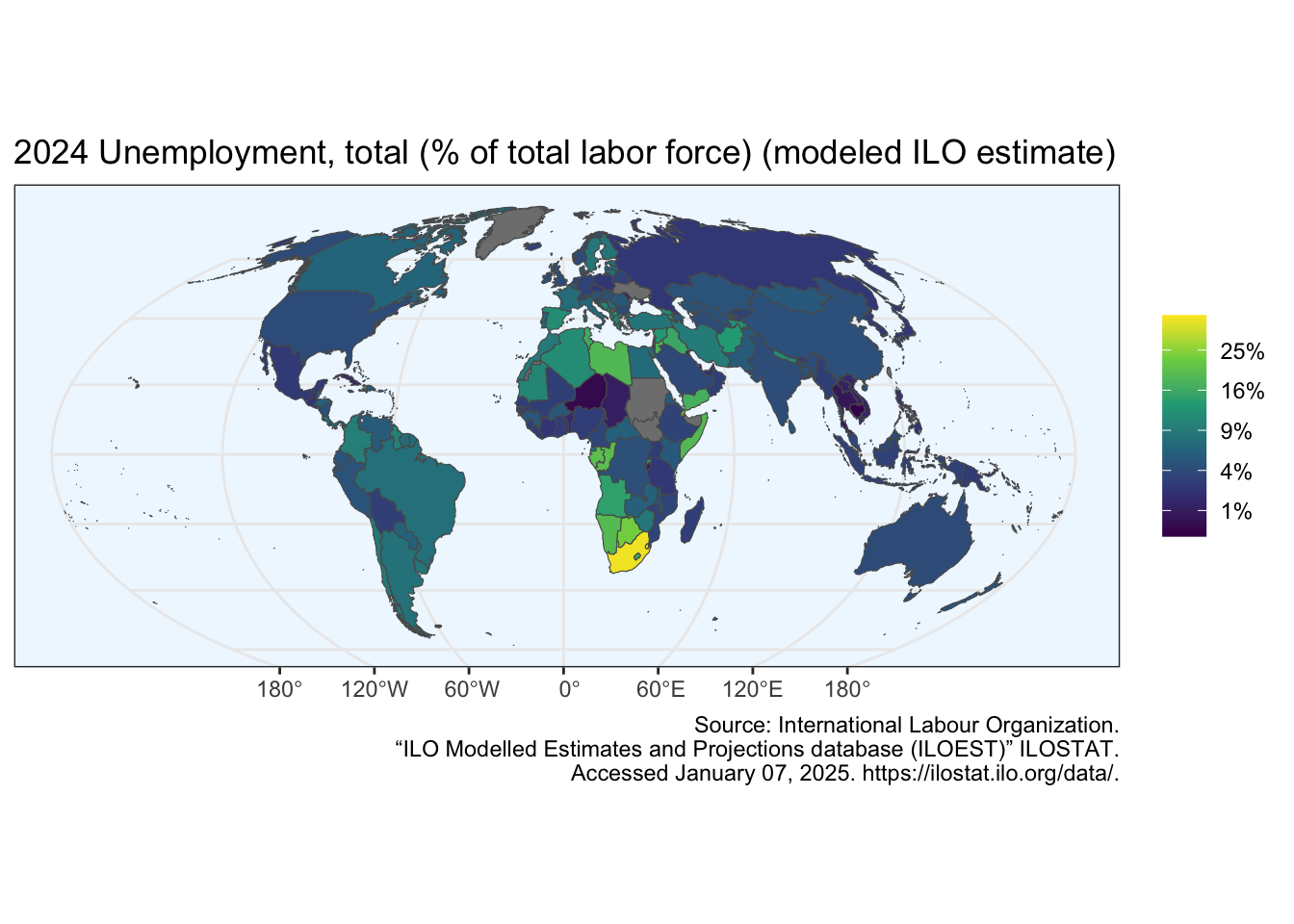 Looking at https://data.worldbank.org/indicator/SL.UEM.TOTL.ZS, I learned the latest data today (2025-05-09) are from 2024.