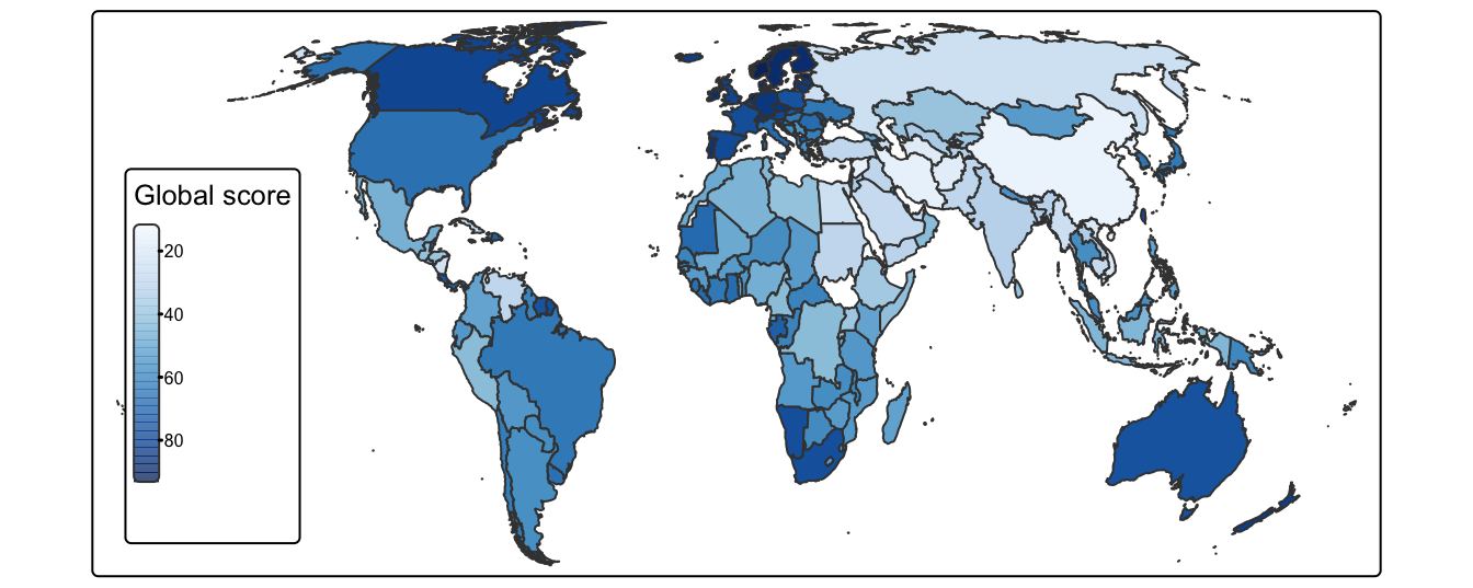 Another basemap layer would not result in a nice visualization as I will color all countries by their score values.