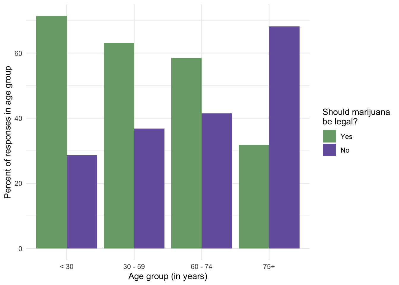 labels = c("< 30", "30 - 59", "60 - 74", "75+" ))) |>