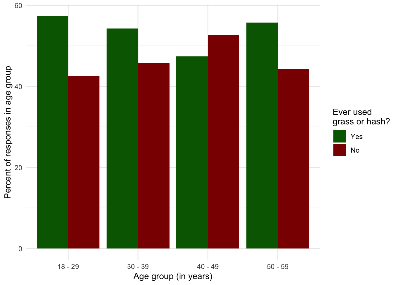 age and grass to work withgrass into factorgrass labelsage from double to numericage into appropriate age intervals and label them accordinglyExample 1.2 : Replicate data structure for bar charts