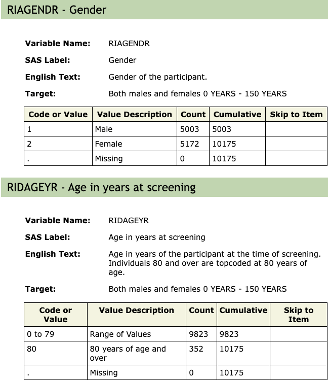 | NHANES | The National Health and Nutrition Examination Survey (NHANES) is a program of studies designed to assess the health and nutritional status of adults and children in the United States. The survey is unique in that it combines interviews and physical examinations. (<a href="https://www.cdc.gov/nchs/nhanes/about_nhanes.htm">NHANES</a>) |