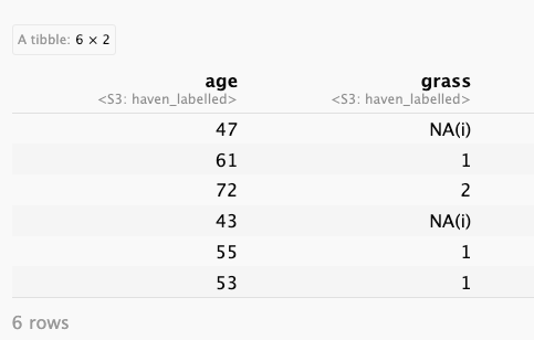 dplyr::mutate(grass = dplyr::na_if(x = grass, y = "DK")) |>