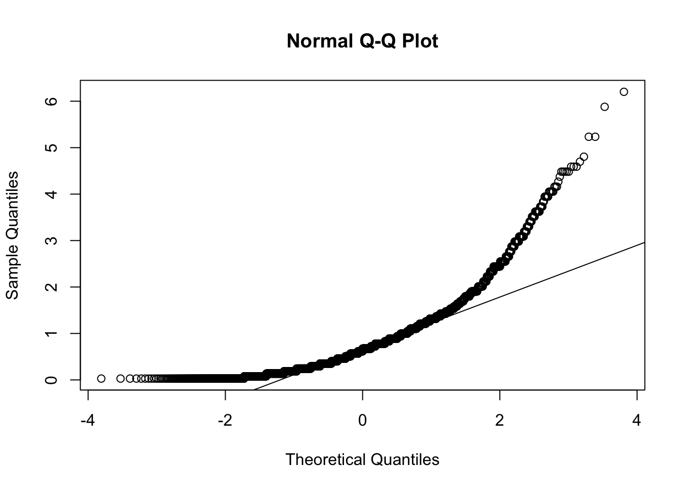A quantile-quantile plot is a visualization of data using probabilities to show how closely a variable follows a normal distribution. (SwR, Glossary) This plot is made up of points below which a certain percentage of the observations fall. On the x-axis are normally distributed values with a mean of 0 and a standard deviation of 1. On the y-axis are the observations from the data. If the data are normally distributed, the values will form a diagonal line through the graph. (SwR, chapter 6)