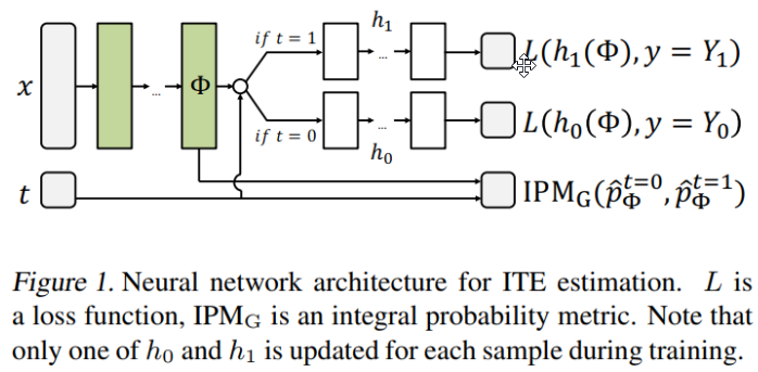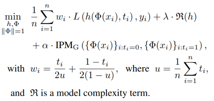 Integral Probability Metric (IPM) measure of distance between two distributions p(x|t = 0), and p(x|t = 1) Objective:
