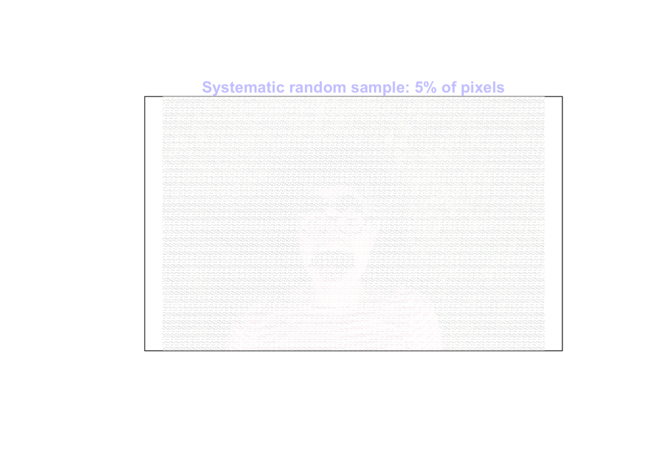 As a demonstration sampling schemes (Marshman and Dunn Submitted), consider taking a non-random sample of 10% of the pixels of an image (Fig. 5.3). What is the image? Seeing the big picture is hard using these non-random samples.