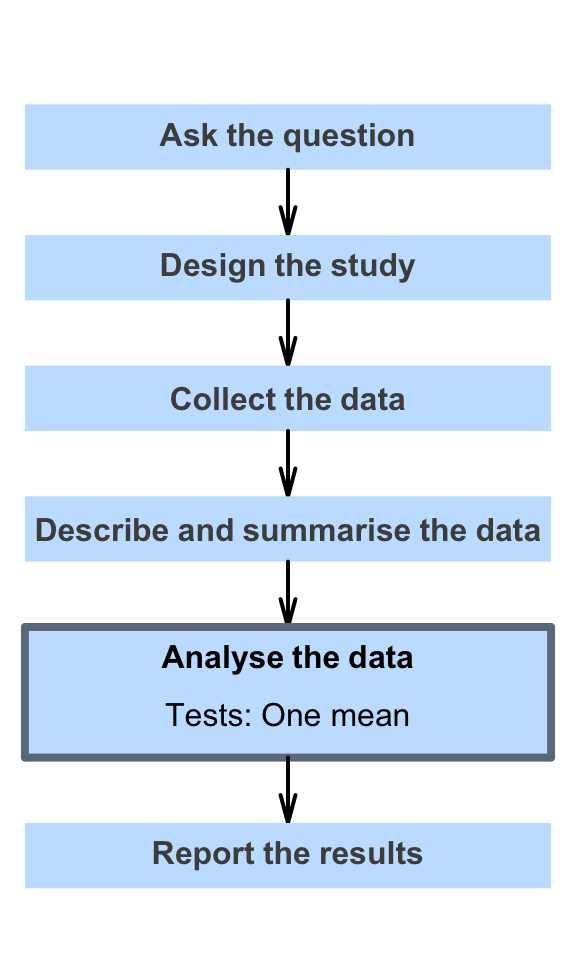 • conduct hypothesis tests for one sample mean, using a \(t\)-test.